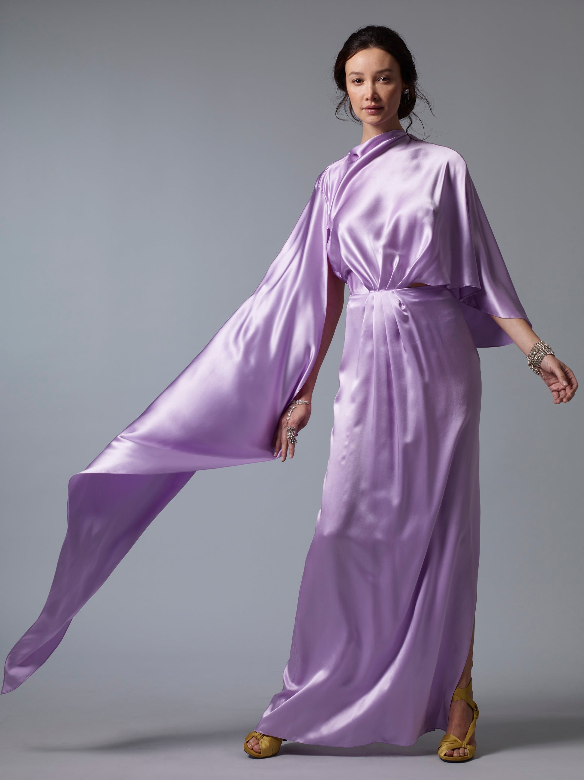 Draped to perfection, Lola hugs and opens in all the right places. Perfect for brides and guests alike she's customizable and available in a range of colors on request.